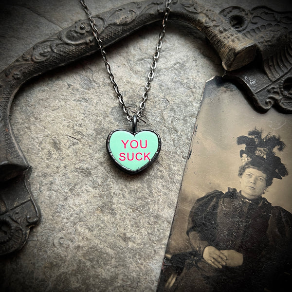 A tiny conversation stopper heart was created into a pendant using a process called electroform; depositing pure copper plating onto items using chemicals and electricity.