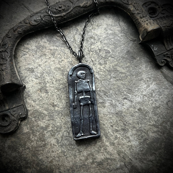 This piece is a collaboration with Gravestone Girls, using their perfected casting technique which exactly replicates original gravestone carvings! The creations in their collection are derived from 17th-21st century gravestones found in cemeteries throughout the New England region.