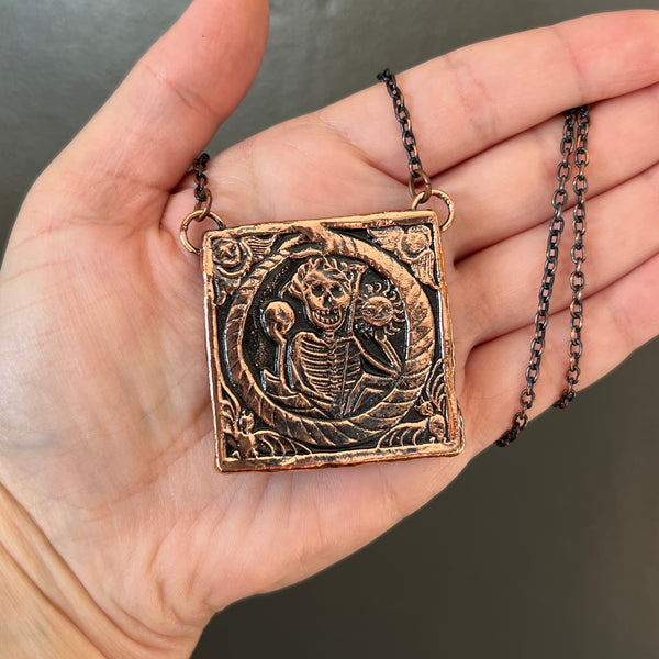“Susannah Jayne” was 3D scanned using photogrammetry to be scaled down in size, resin printed, and then created into a pendant using a process called electroform; depositing pure copper plating onto items using chemicals and electricity.